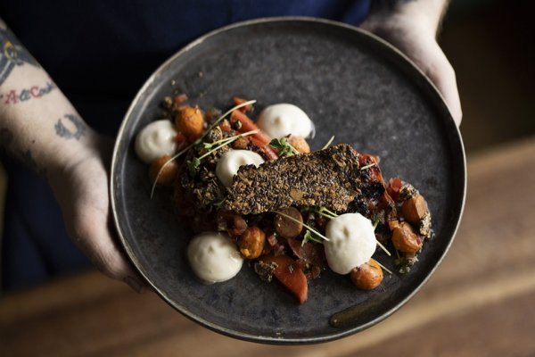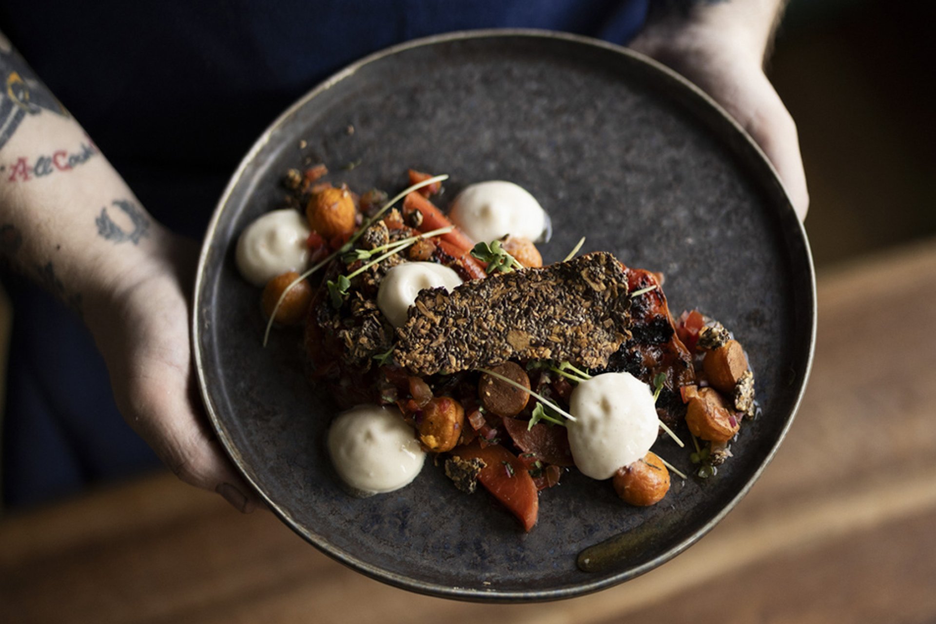 Seit Anfang 2025 verzückt Koch Simon Huber die Gäste mit seinen Kreationen. Simon wollte schon mit sechs Jahren Koch werden. Ob er sich je habe vorstellen können, pflanzenbasiert zu kochen? «Ich finde es grossartig, dass ich mit Einfachem die Menschen glücklich machen kann», schwärmt der Süddeutsche, der für Praktika in den Küchen von Gordon Ramsay und Tim Raue gestanden ist. «Ich habe die Vielseitigkeit von Gemüse entdeckt und tüftle ständig weiter. Beim Fleisch findest du bei uns nie ein Entrecôte oder ein Filet – lieber fahre ich nach dem Motto ‹Nose-to-Tail› und interpretiere alte Klassiker neu.» Gerade habe er eine Crevette auf der Basis von Nori-Algen kreiert, verrät er sichtlich stolz.