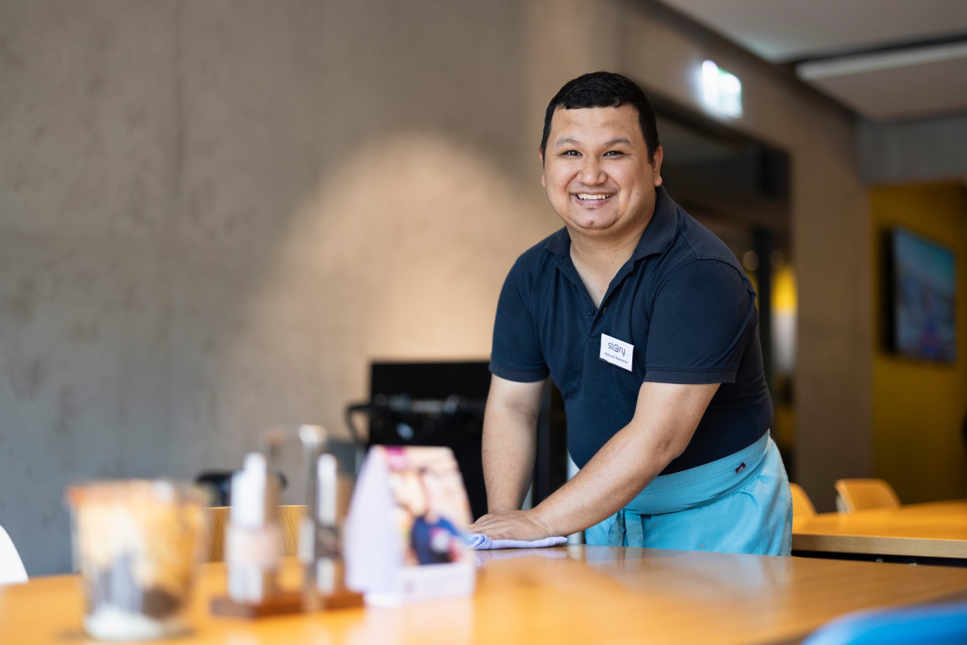 Conys Botschaft an Berufskolleginnen und -kollegen: «Das Arbeiten in inklusiven Teams gestaltet sich sehr lebendig, kein Tag gleicht dem anderen. In der Gastronomie ist Inklusion ein doppelter Gewinn: Einerseits verwöhnt man Gäste mit feinem Essen, andererseits leistet man einen Beitrag zur persönlichen Entwicklung eines Teamkollegen. Mut ist dabei zentral: Mut, Veränderungen anzustossen. Mut, Neues auszuprobieren, und auch Mut, Rückschläge in Kauf zu nehmen. Wie sagt man so schön? Den Mutigen gehört die Welt.»